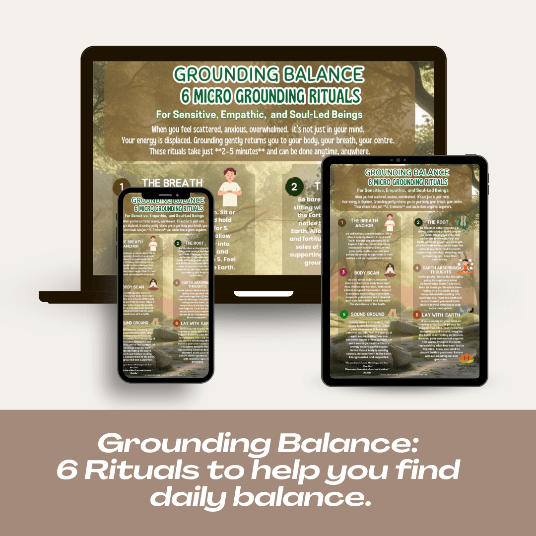 Six quick grounding practices you can use anywhere to reset your nervous system and return to the present moment. Ideal for busy days, stressful situations or emotional overwhelm.